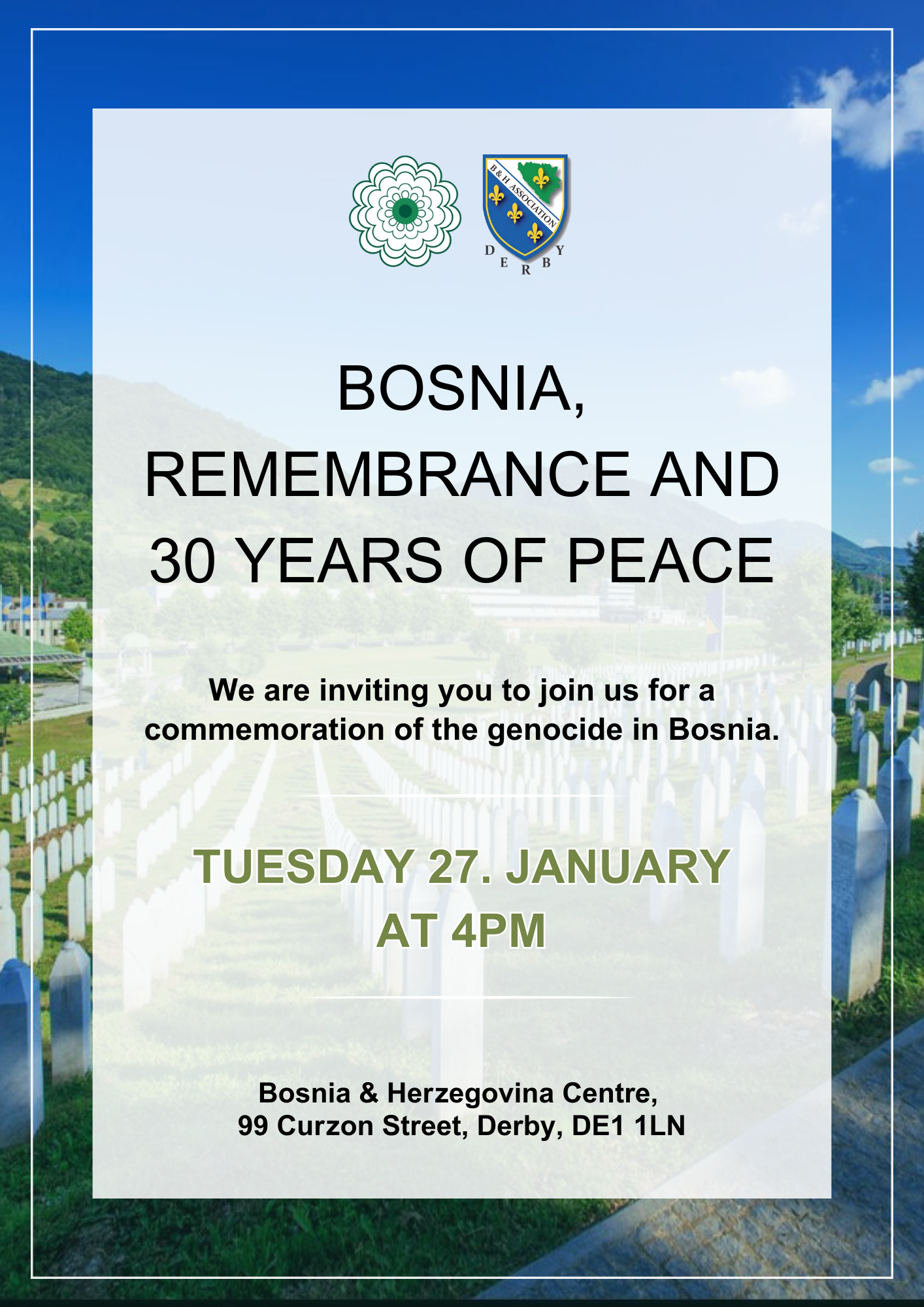 This event marks 30 years since the end of the Bosnian war, providing an opportunity to remember the victims, reflect on the importance of peace, reconciliation, and justice, and honour the resilience of the Bosnian community.