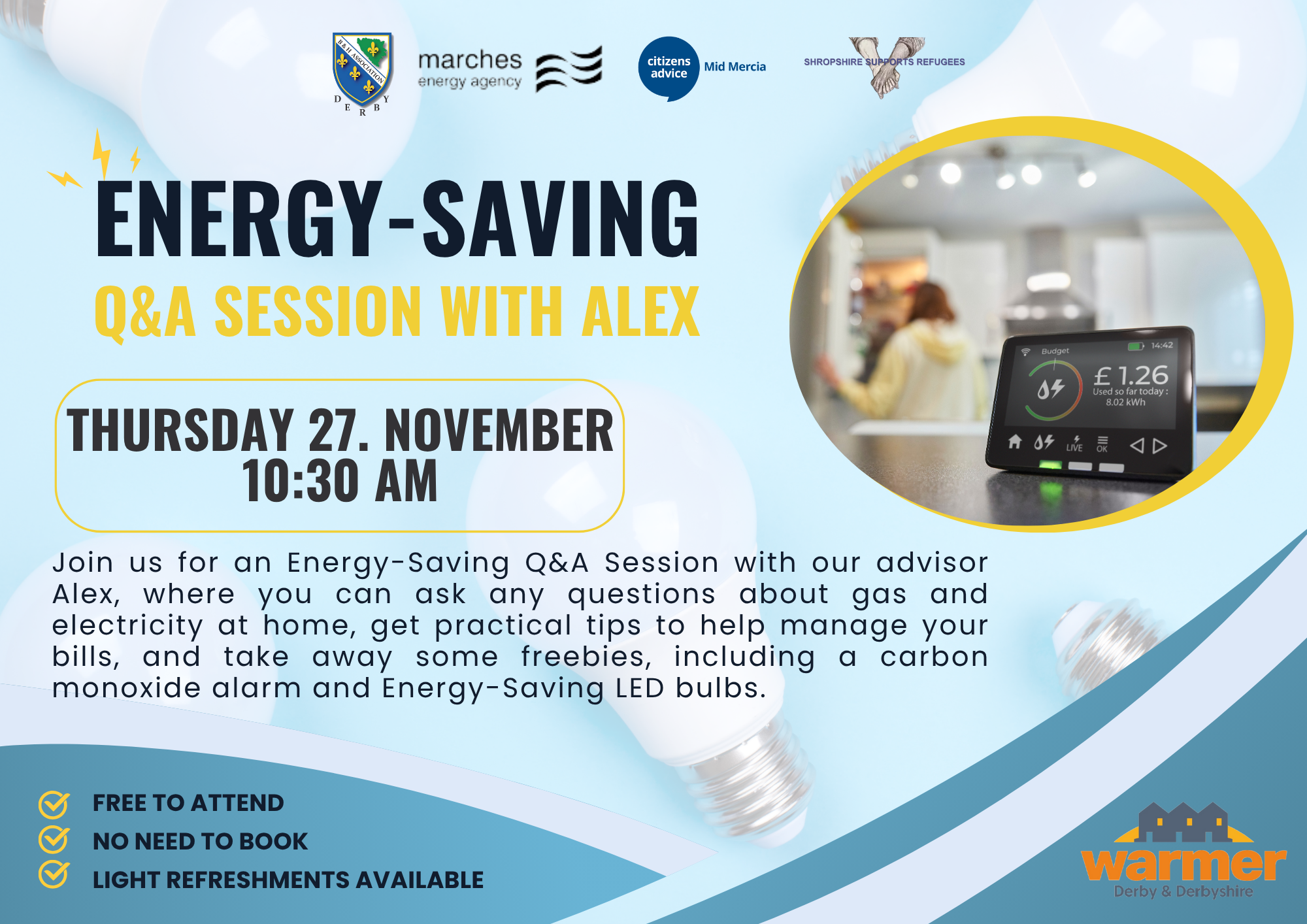 Got questions about gas, electricity, or how to lower your bills? Join our Energy Advice Session with Alex! Get practical tips, grab some freebies like a carbon monoxide alarm and LED bulbs, and make your home more energy-efficient.