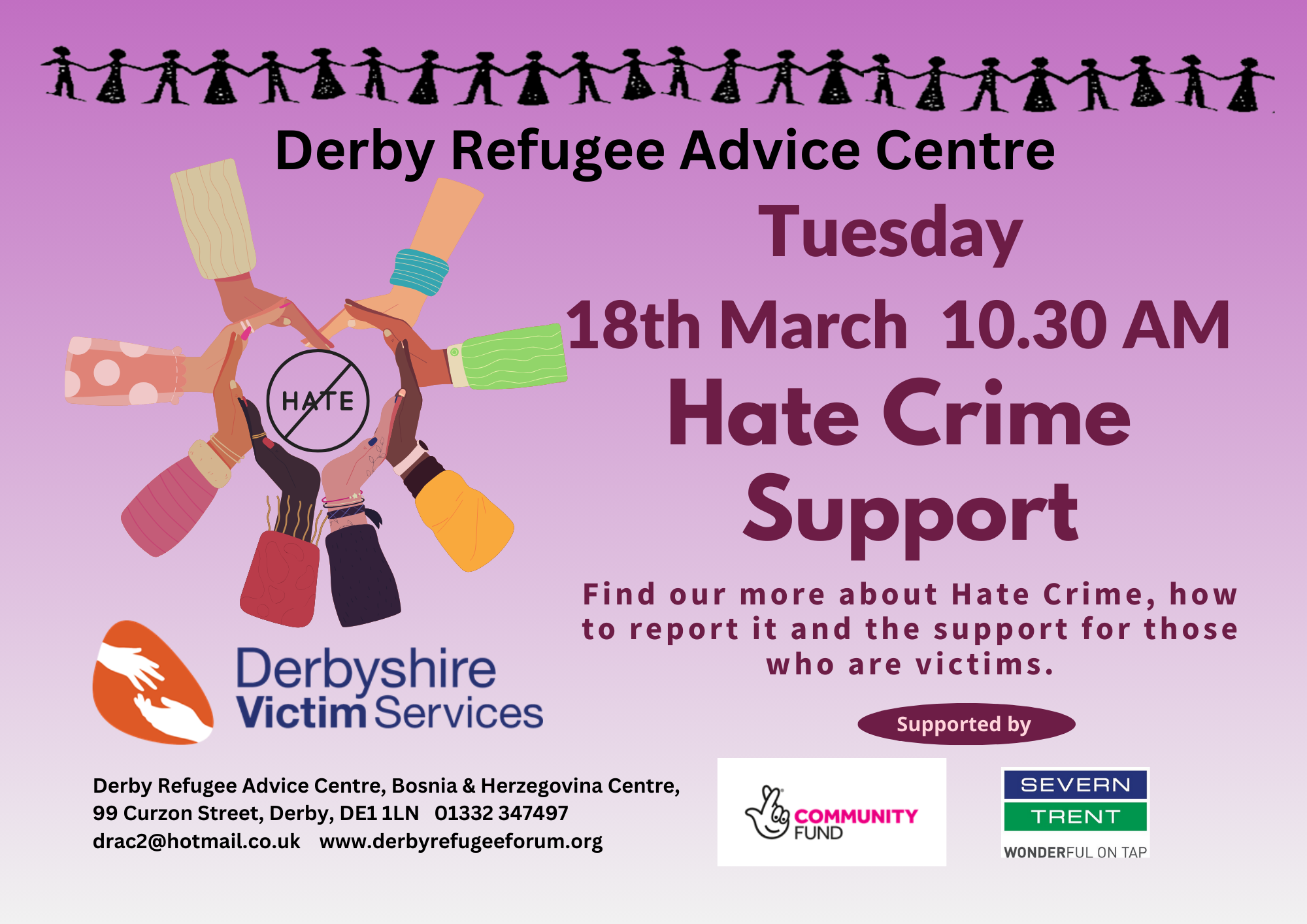 Join us on Tuesday 18th March at 10:30am to find out more about hate crime, how to report it and the support to those who are victims.